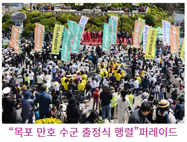 "목포 만호 수군 출정식 행렬"퍼레이'사랑의 노적 쌓기' 퍼포먼스 등